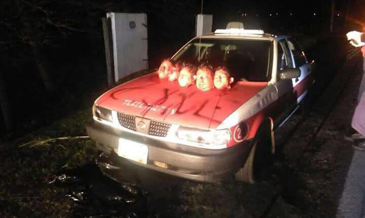 Sobre el cofre de taxi fueron abandonadas las cabezas de 5 sujetos que hasta el momento no han sido identificados en El sureste del estado de Veracruz dentro de la cuenca del Papaloapan.