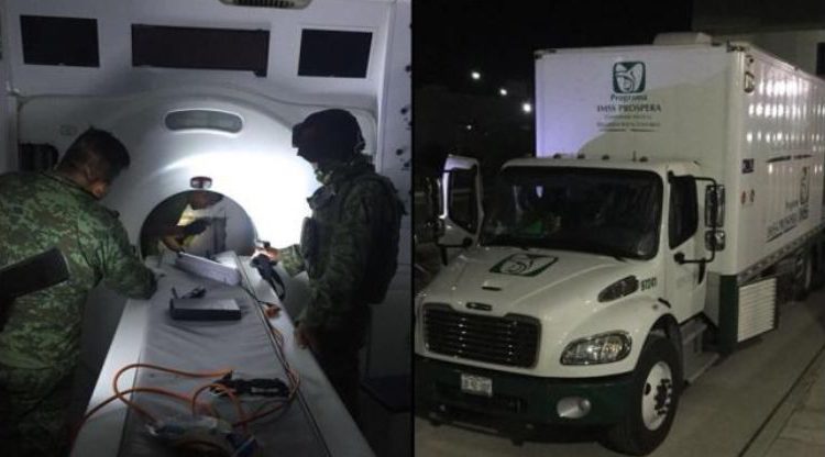 Los paquetes se encontraban ocultos un un tomógrafo, el cual estaba instalado en un camión color blanco con logotipos del IMSS, idéntico a una unidad médica móvil, en el cual viajaban dos hombres y una mujer que aseguraron pertenecer a la Instituto.