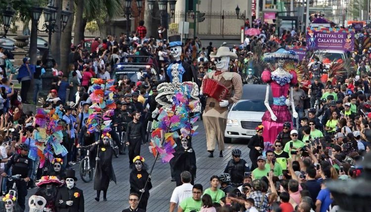 Durante una hora aproximadamente las calles Zaragoza y Zuazua estuvieron cerradas para dar paso a los contingentes que integran poco más de un kilómetro en el que niños, jóvenes y adultos animan al público vestidos de diferentes estilos, desde la época prehispánica hasta los tradicionales personajes calavéricos de Posada, el caricaturista mexicano.