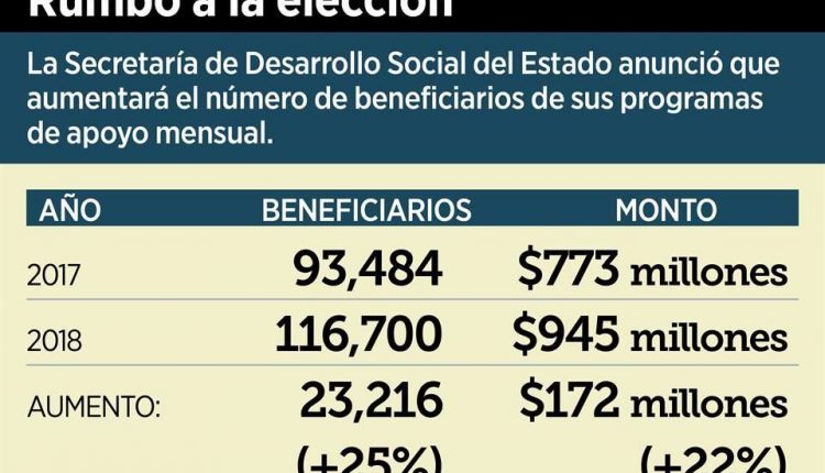 A seis meses de que se lleven a cabo las elecciones, el Gobierno del Estado anunció ayer que ampliará en un 25 por ciento el padrón de beneficiarios de programas sociales, lo que implicará un incremento de 172 millones de pesos en el gasto.