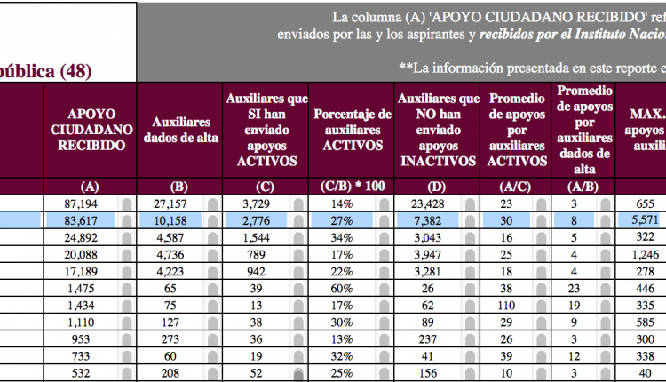 Según el propio INE, 95 mil 123 auxiliares están registrados en la plataforma, de los cuales 75 mil 907 se encuentran inactivos, es decir no han recolectado una sola firma.