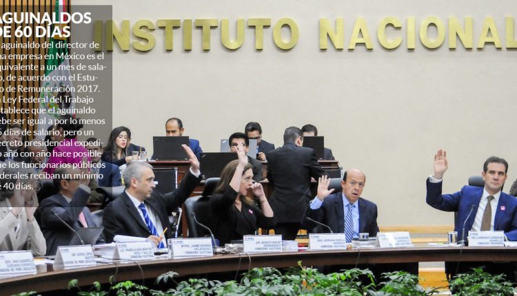 Ciudad de México, 20 de diciembre (Serendipia/SinEmbargo).– Los 11 consejeros del Instituto Nacional Electoral (INE), el presidente y los tres vicepresidentes del Instituto Nacional de Estadística y Geografía (INEGI), el Auditor Superior de la Federación, el presidente de la Comisión Nacional de los Derechos Humanos (CNDH) y los siete comisionados del Instituto Nacional de Transparencia, Acceso a la Información y Protección de Datos Personales (INAI) reciben 61 días de su salario mensual como aguinaldo.