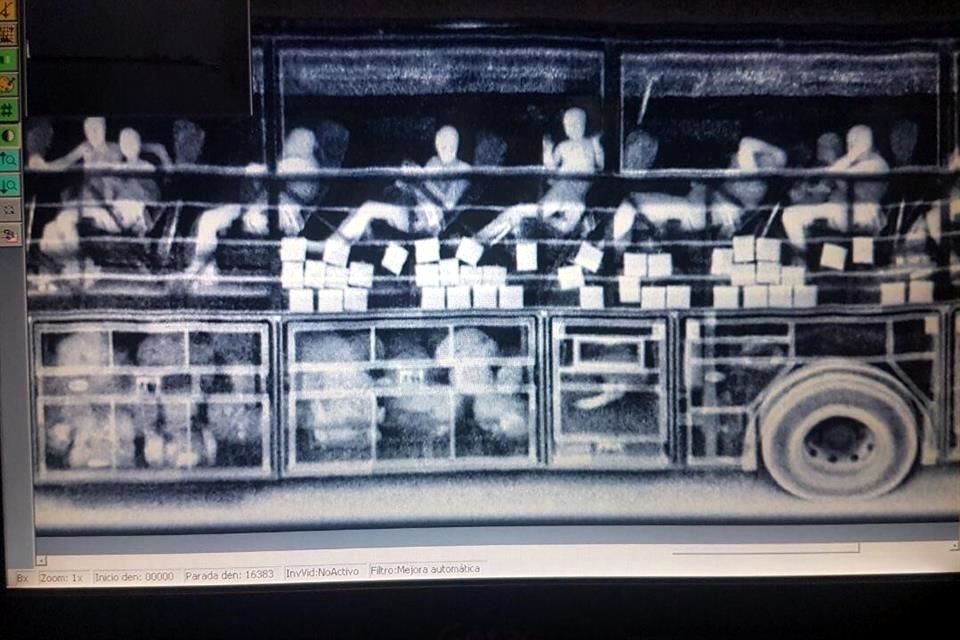 El personal naval detectó, mediante rayos Gamma, irregularidades en la estructura interna del autobús, ante lo cual, peritos encontraron 43 paquetes con dólares en efectivo, en un panel lateral del camión que estaba ensamblado a propósito para esconder los billetes envueltos y sellados en plástico resistente.