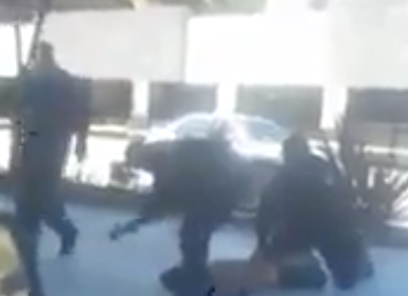 Un video que circula en internet grabado por dos ciudadanos aparentemente en la ciudad de Tijuana en Baja California muestra el momento en que policías municipales someten a una persona a las afueras de una gasolinera aparentemente por lanzar piedras a un establecimiento comercial.