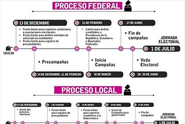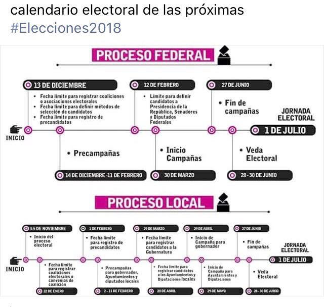 Si bien a las personas que no son muy afines a la política, no les es muy importante que se abran las fechas de los calendarios electorales, sin embargo, existen la contra-parte que si les atrae candidaturas, fechas de votaciones, límites y todo lo que con lleva, le invitamos que tome en cuenta en calendario que mostramos en la gráfica.