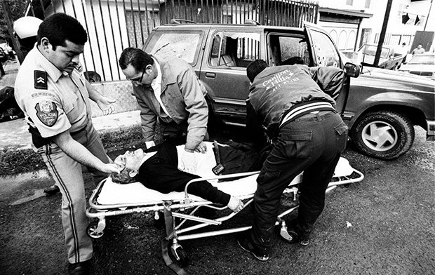 El traca-traca terminó. Un silencio sentí como jamás. Oí un rechinar de llantas. Supuse que los pistoleros huían. Escuché una sirena a lo lejos y cada vez más cerca hasta aturdirme. Alguien abrió la portezuela y me gritó: “¡Manos arriba! ¡Arriba las manos!”. Era un paramédico. Nada más alcé la izquierda. Me jalaron y tendieron en una camilla. Vi un rostro. “Te vamos a llevar a la Cruz Roja. Todo está bien”. Como pude le dije que al Hospital del Prado por estar más cerca. No recuerdo cuando fui subido a la ambulancia. Mi compañera Adela Navarro iba en el asiento delantero. No escuché cuando insistió, bajo su responsabilidad, al Hospital del Prado. Ni sentí cuando me bajaron. Solamente me caló muy fuerte en los ojos una lámpara. Hombres de bata blanca me dijeron “estese tranquilo” al momento que ordenaban rasgar mi ropa. De pronto todo se volvió negro. Oía voces a lo lejos. No sentía dolor. Ya respiraba bien. Pero no podía moverme. Entré a una negrura insonora. Ni de dónde agarrarme, ni viendo el fondo. Como flotando. Después me perdí. Así debe ser tal vez el momento de la muerte.