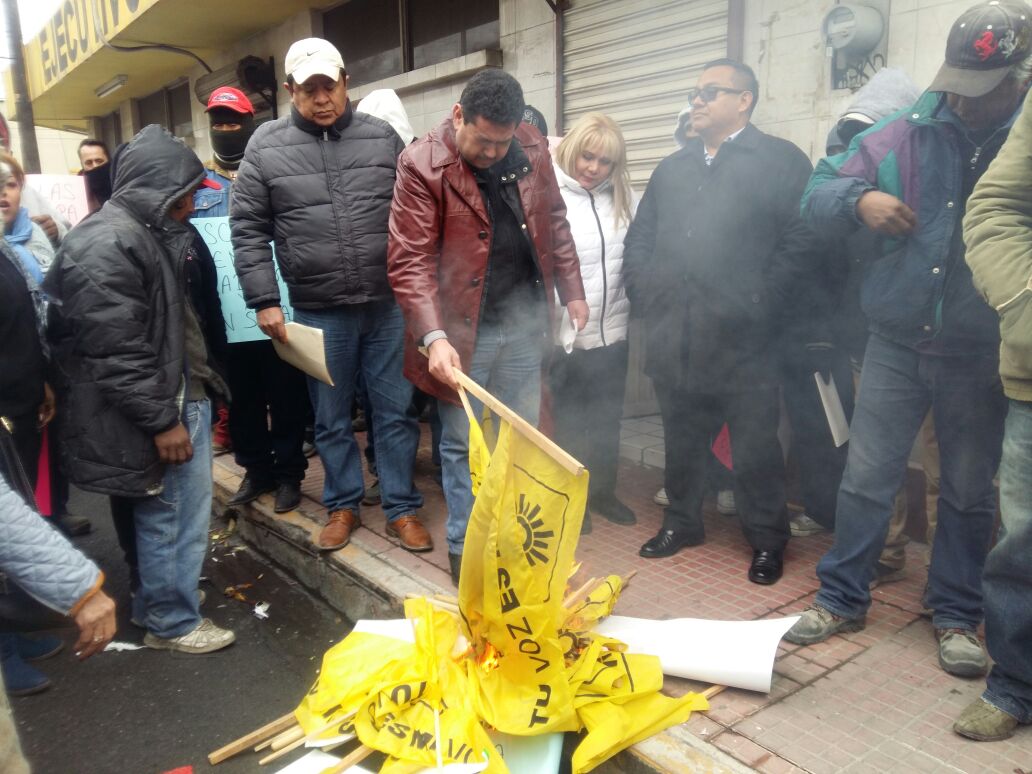 Ante la negativa de recibir a los lideres de las distintas regiones perredistas en el Estado, la gente empezó a gritar consignas contra los dirigentes estatales y nacionales partidistas a un solo grito decían “Queremos Audiencia”, “Fuera Aníbal” “Fuera Arguijo” a pesar de los reclamos de los asistentes no hubo reacción de los dirigentes estatales y fue entonces cuando empezó la quema de banderas con el emblema del PRD.