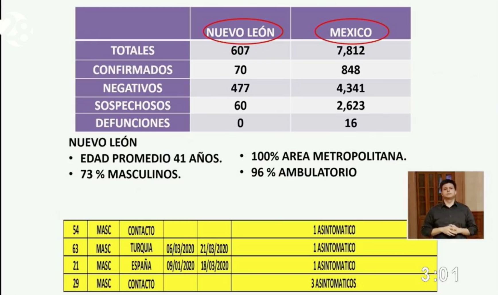 Último Minuto SUBE A 109 CIFRA DE INFECTADOS EN N.L. Por Victor Badillo Publicado Mar 30, 2020 0 953 Compartir La Secretaría de Salud de Nuevo León anunció, que en el estado se han confirmado 109 casos de COVID-19 y se mantienen en como sospechosos 39 casos. 🔴 Actualización sobre coronavirus (COVID-19) en el estado🔴🎥#EnVivoActualización al momento sobre coronavirus (COVID-19) en el estadoPosted by Gobierno del Estado de Nuevo León on Sunday, March 29, 2020 covi-19manuel de la o 0 953 Compartir FacebookTwitterWhatsAppPinterestEmailTelegramImprimir