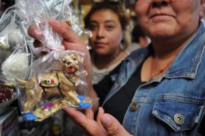 Una figura de la famosa perrita rescatista se ofrece en la zona de productos esotéricos del Mercado Sonora como amuleto de la buena suerte para el 2018. De acuerdo con los comerciantes, quien posea a Frida, tendrá protección ante cualquier eventualidad sísmica, con ello el ingenio de los comerciantes mexiquenses quedó una vez más revelado.