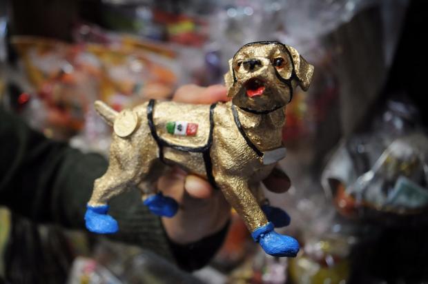 Una figura de la famosa perrita rescatista se ofrece en la zona de productos esotéricos del Mercado Sonora como amuleto de la buena suerte para el 2018. De acuerdo con los comerciantes, quien posea a Frida, tendrá protección ante cualquier eventualidad sísmica, con ello el ingenio de los comerciantes mexiquenses quedó una vez más revelado.